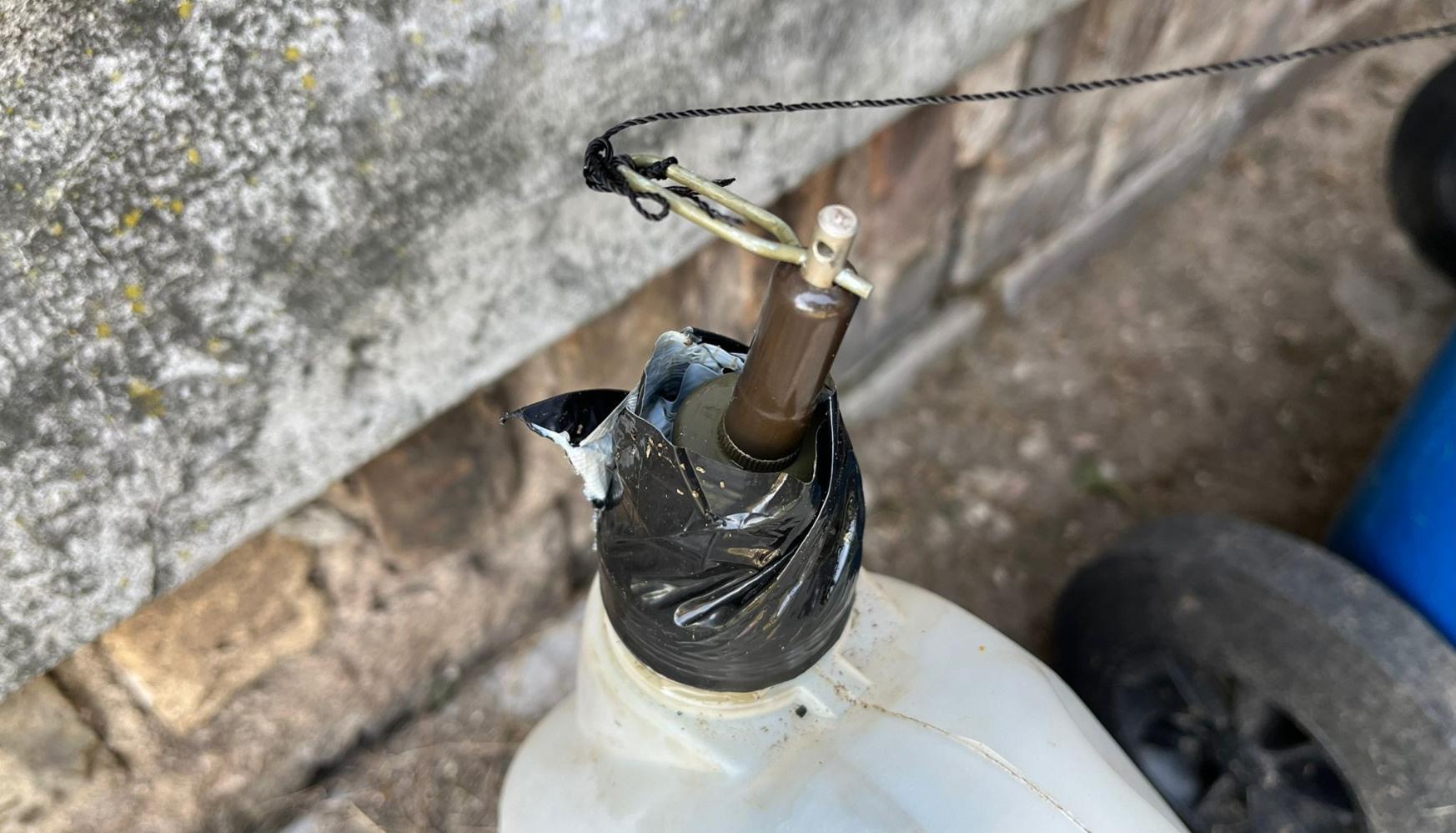 По данным Государственной полиции (VP), 23 августа женщина 1987 года рождения на улице Петера обнаружила, что к диску шины ее автомобиля прикреплена капроновая нить. Проверив, к чему подсоединена нить на другом конце, женщина обнаружила в мусорном контейнере самодельное, возможно, взрывное устройство с пусковым механизмом.