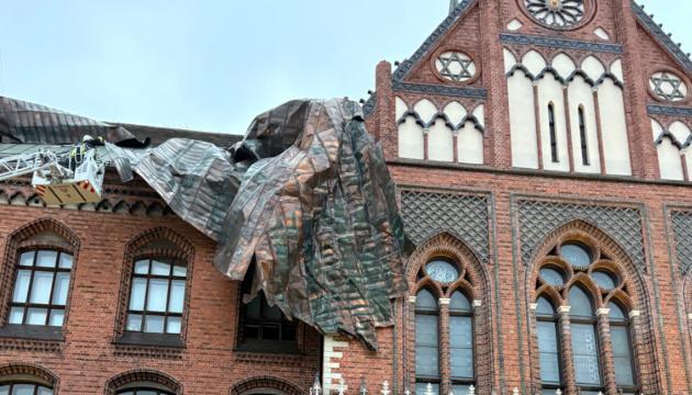 Сильный ветер сорвал часть покрытия крыши на здании Латвийской художественной академии, а также повредил два декоративных башенных элемента, сообщила агентству ЛЕТА специалист по связям с общественностью ЛХА Лаура Озола.