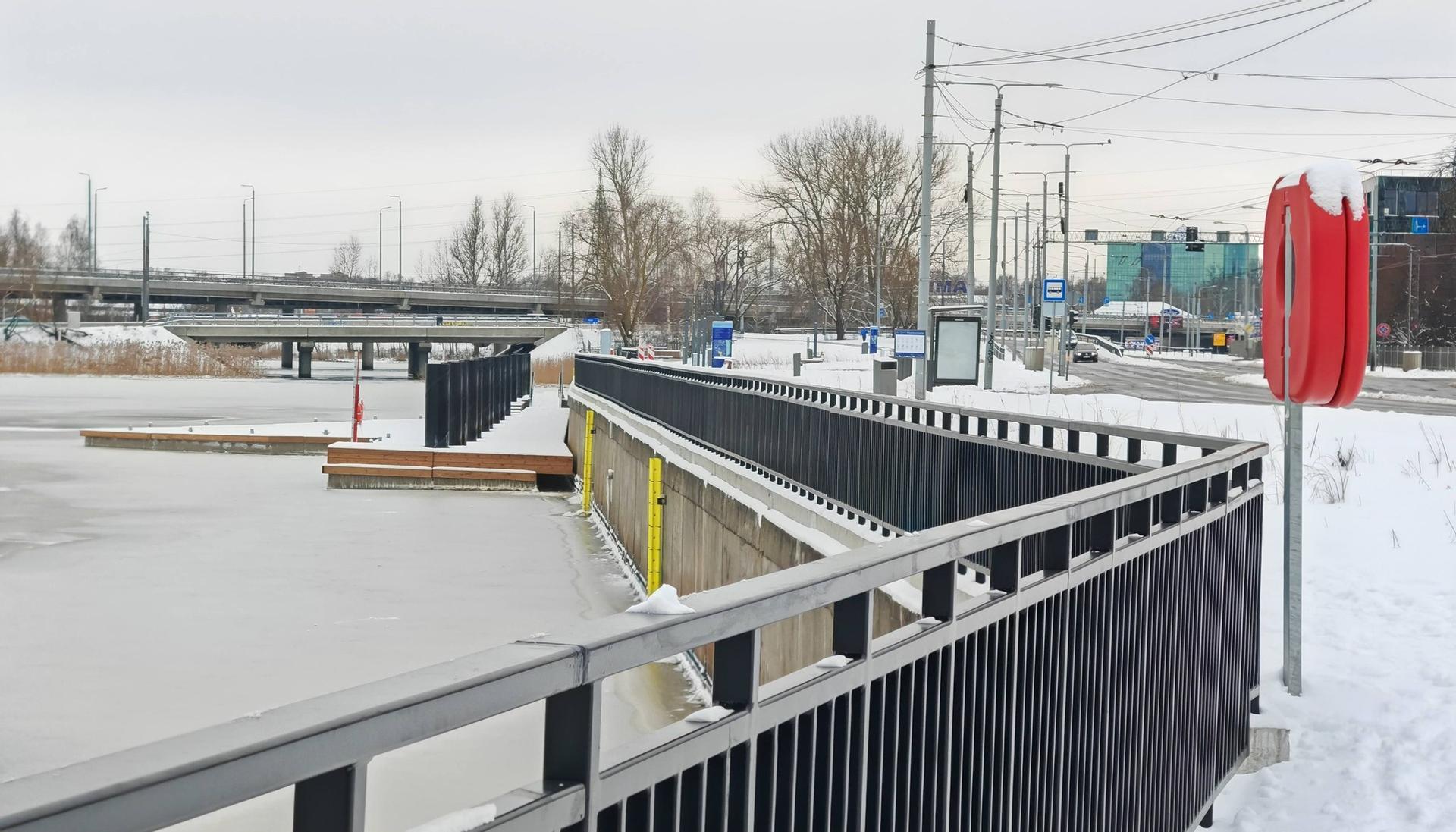 Между Каменным и Железнодорожным мостами, напротив Латвийской национальной библиотеки, построена новая смотровая площадка площадью 1950 квадратных метров с гранитным и бетонным покрытием. Она спроектирована в виде ступенчатой платформы с дизайнерским освещением, сидениями и возможностью временной швартовки лодок и кораблей. Форма смотровой площадки особенная - она символизирует отражение Замка света в водах Даугавы.